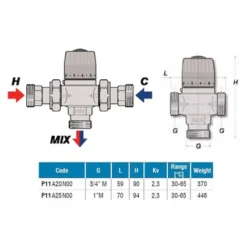 Barberi Mélange Thermostatique à Mi-orifice 30-65C° 2,3m3 / H 1″ Mâle BSP
