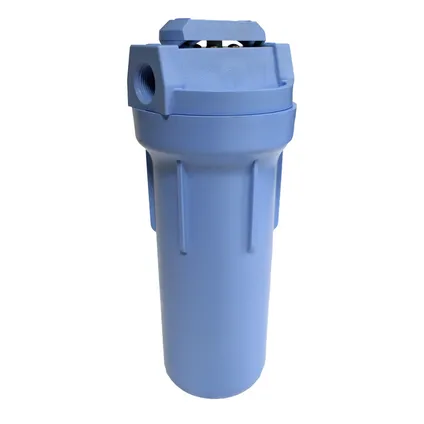 La vanne double action coupe l’alimentation aisément pour changer la cartouche et actionne l’évent automatiquement pour mettre le filtre à la pression atmosphérique avant le démontage de la cuve. Pour un filtrage optimal, remplacez régulièrement les cartouches. Pression maximale : 6 bars. Débit maximal : 1500 litres/h. Entrée et sortie : 3/4″.