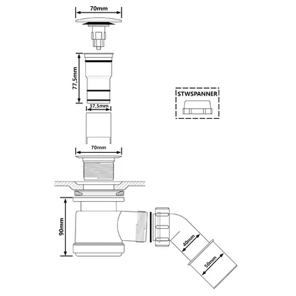 Economie d’espace - Caractéristiques techniques Hauteur9 cmLargeur7 cmMatièreSynthétiqueAvec connexion au lave-vaisselleDiamètre du trou d’évacuation40 mmProfondeur27 cm