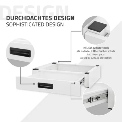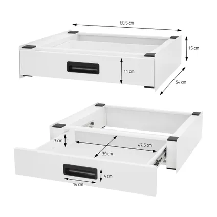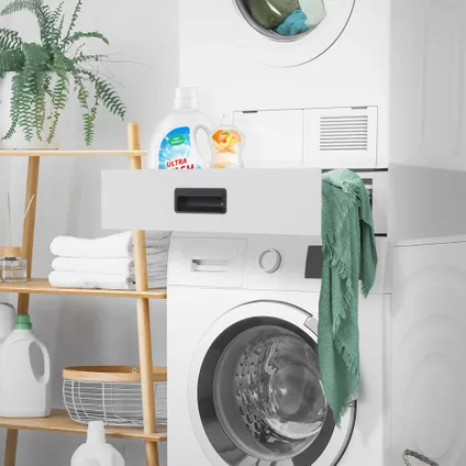 Notre cadre intermédiaire universel avec tiroir t’offre la solution idéale pour ton lave-linge et ton sèche-linge. Avec un plan de travail de 60x60cm compatible avec toutes les marques, le cadre est déjà prémonté et facile à installer. Le tiroir coulissant t’offre une solution de rangement spacieuse pour tes accessoires de machine à laver avec une capacité de charge allant jusqu’à 10 kg. Gagne de la place dans ta maison en plaçant le sèche-linge sur le lave-linge et en le reliant en toute sécurité grâce à la sangle de serrage. Ce cadre convient aux lave-linge de marques connues telles que Bosch, Siemens, Miele, Samsung, Beko, AEG et Bauknecht et peut être vissé au besoin à l’aide des vis fournies. Procure-toi dès maintenant notre cadre intermédiaire pratique avec tiroir pour un rangement simple et ordonné de tes accessoires de lavage.